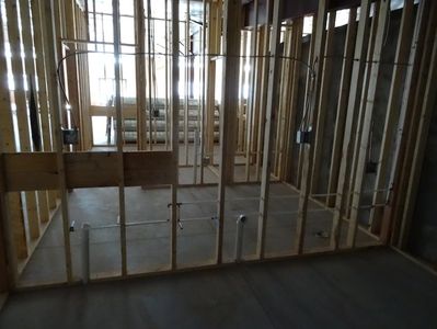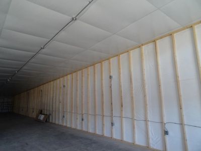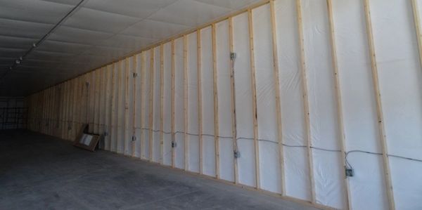 The front wall was framed in near the middle of the month, and the ceiling and insulation was installed. Click on photos below for an enlarged view.