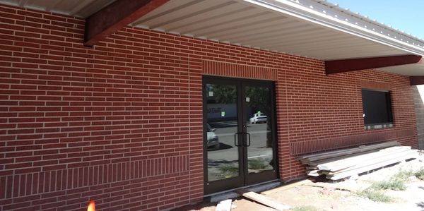 Brickwork on the front of the museum continued throughout the month, and by the third week of August, the front facia brickwork was completed. The brickwork was done by Brad Timm (and others), and most of the bill for the work was paid for by Duane Timm and First National Bank. The awning on the front of the museum was completed on August 27th.