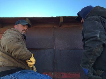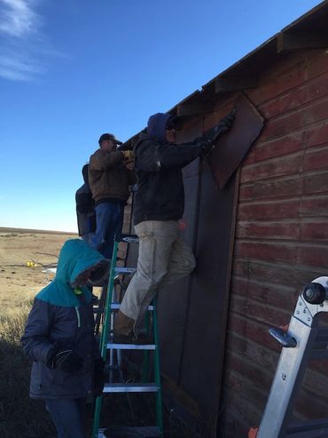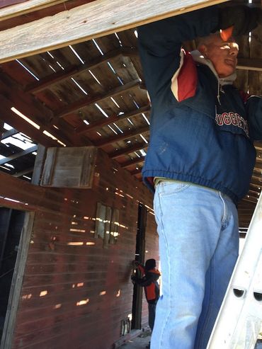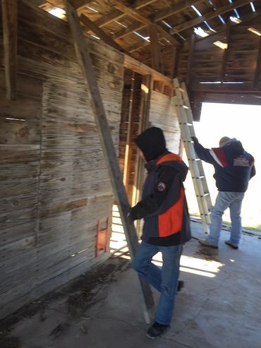On a cold Saturday, November 21, several museum supporters gathered to remove old wood and tin from a local granary to be used as materials for the museum interior. Photos from the work day are below.
