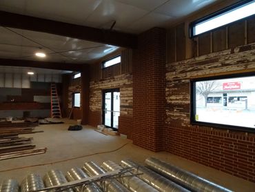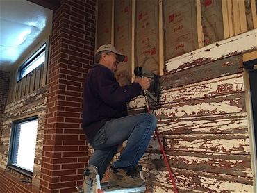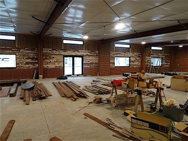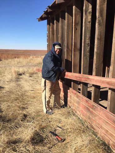 Construction continued on the interior walls. More old wood was removed from old buildings located in Cheyenne County for use on the interior walls of the museum. Several work days (and nights) were held, and the recycled materials were installed on the museum walls. Old wood was used on the north and south walls. The east wall was covered in a random pattern of old wood and old metal.